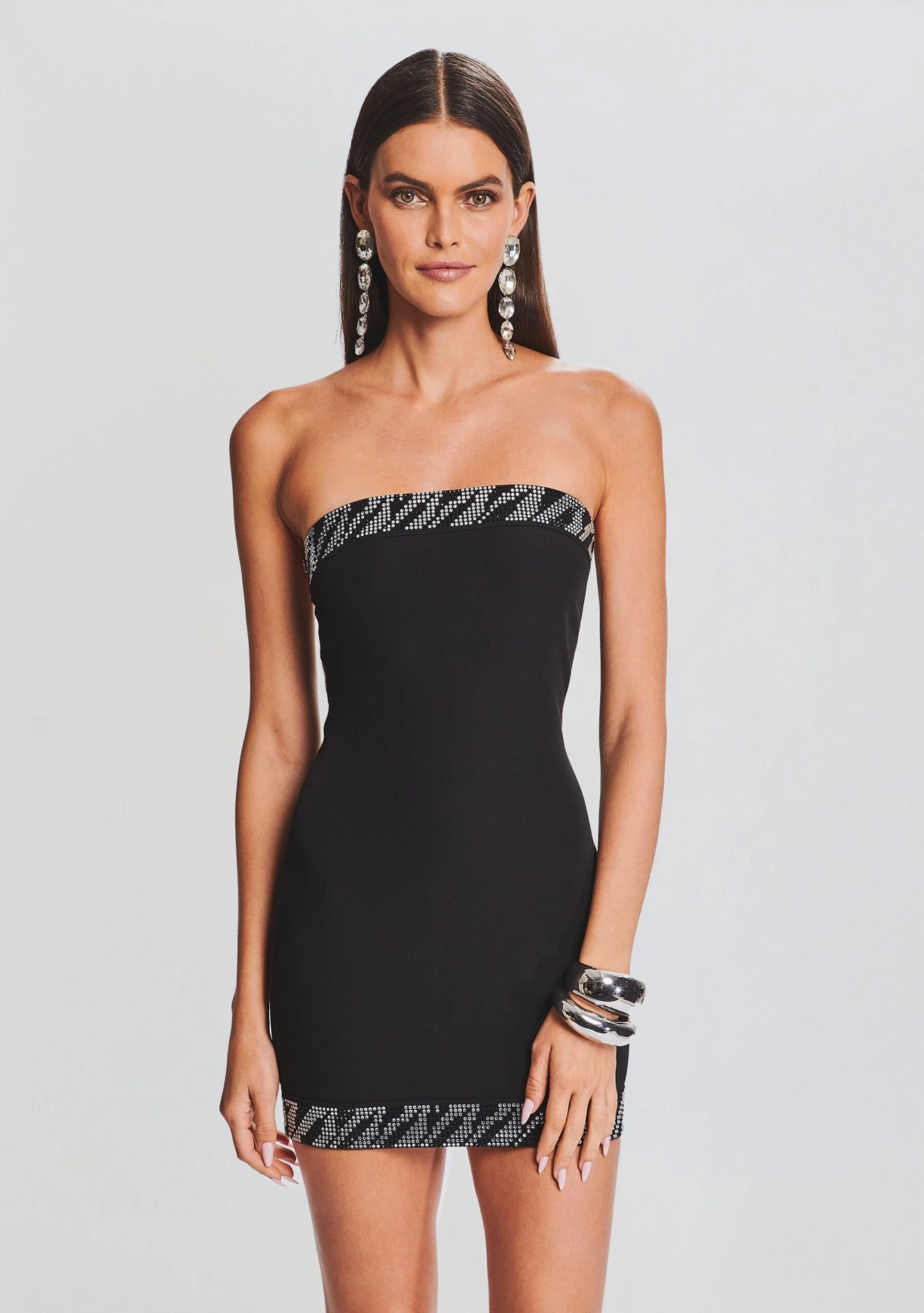 Be the center of attention in our Abigail Dress. Featuring a flattering body con silhouette and adorned with a sequin embellished hem, this dress is a celebration of style and glamour, designed for those who want to make a statement at every soirée. Shown here in Black/Silver.