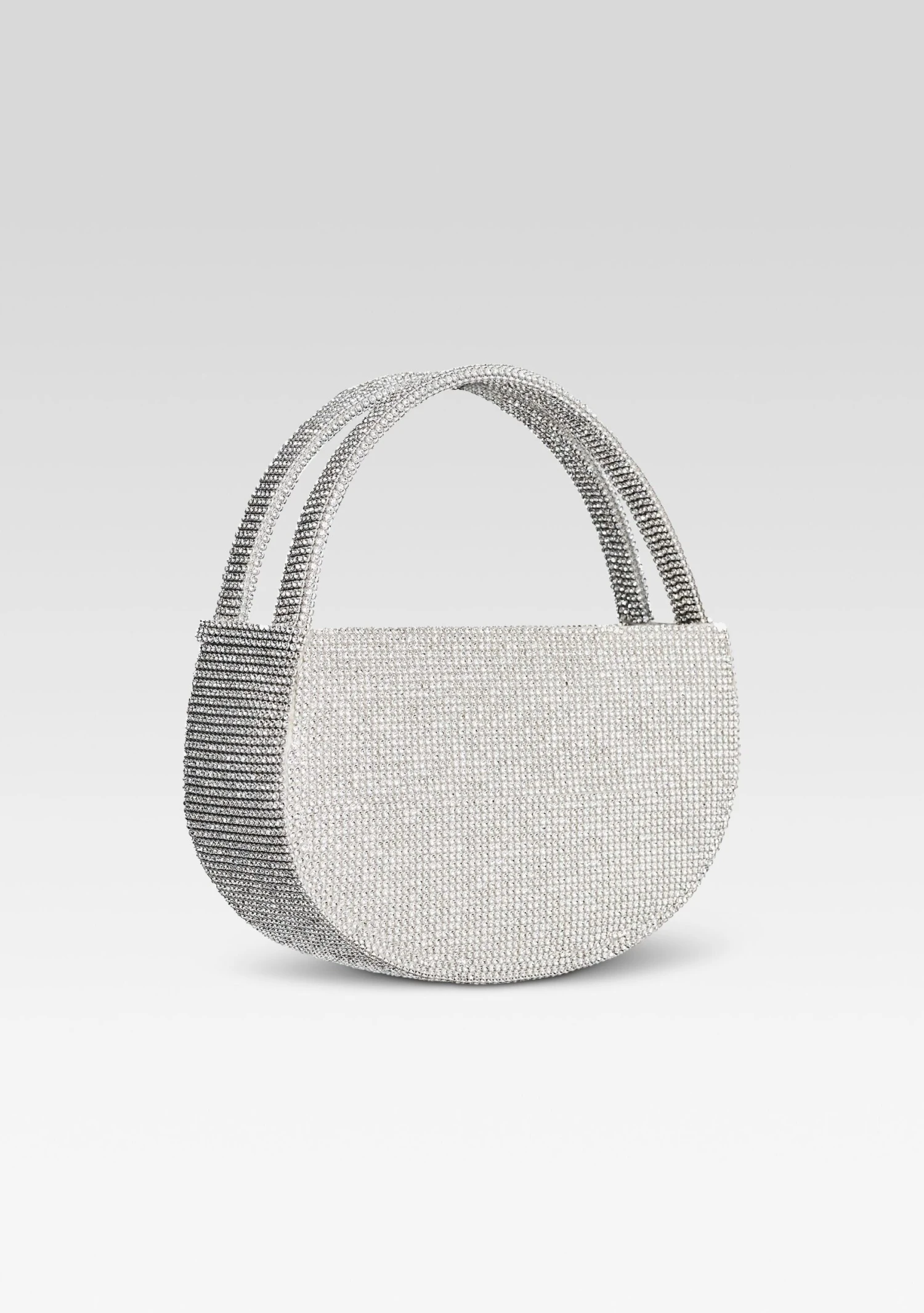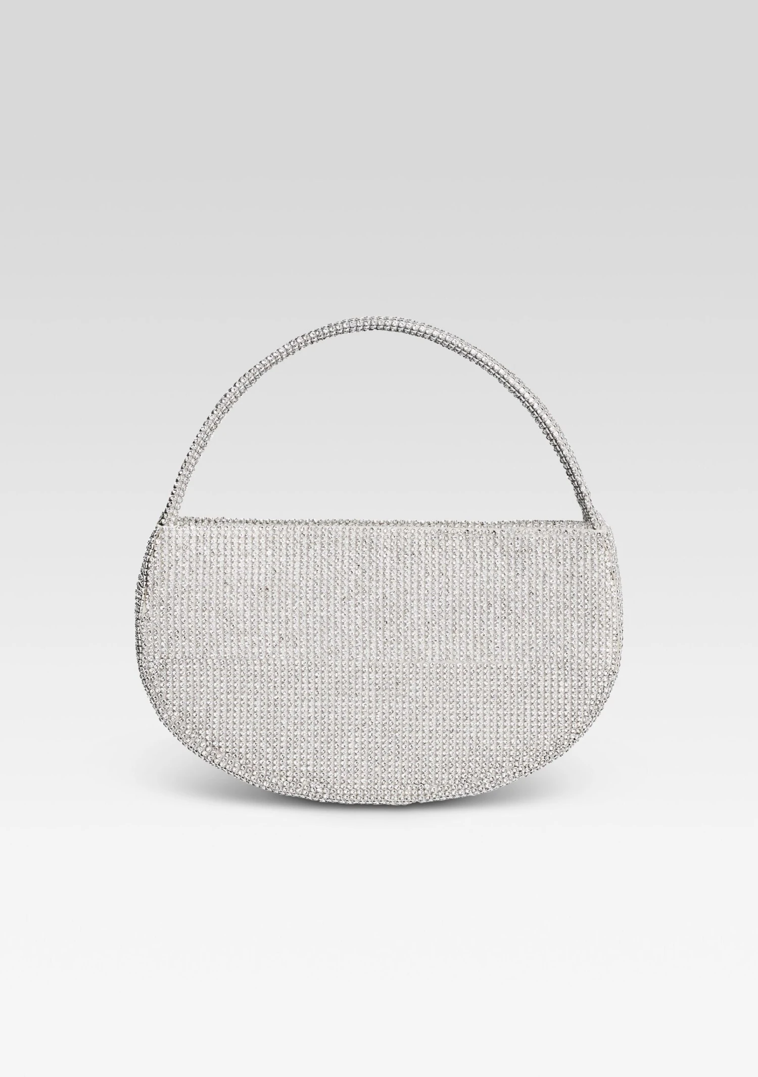 Illuminate your wardrobe with our Betsy Medium Crystal Bag featuring bright embellishments and coordinating handle. Shown here in Silver.