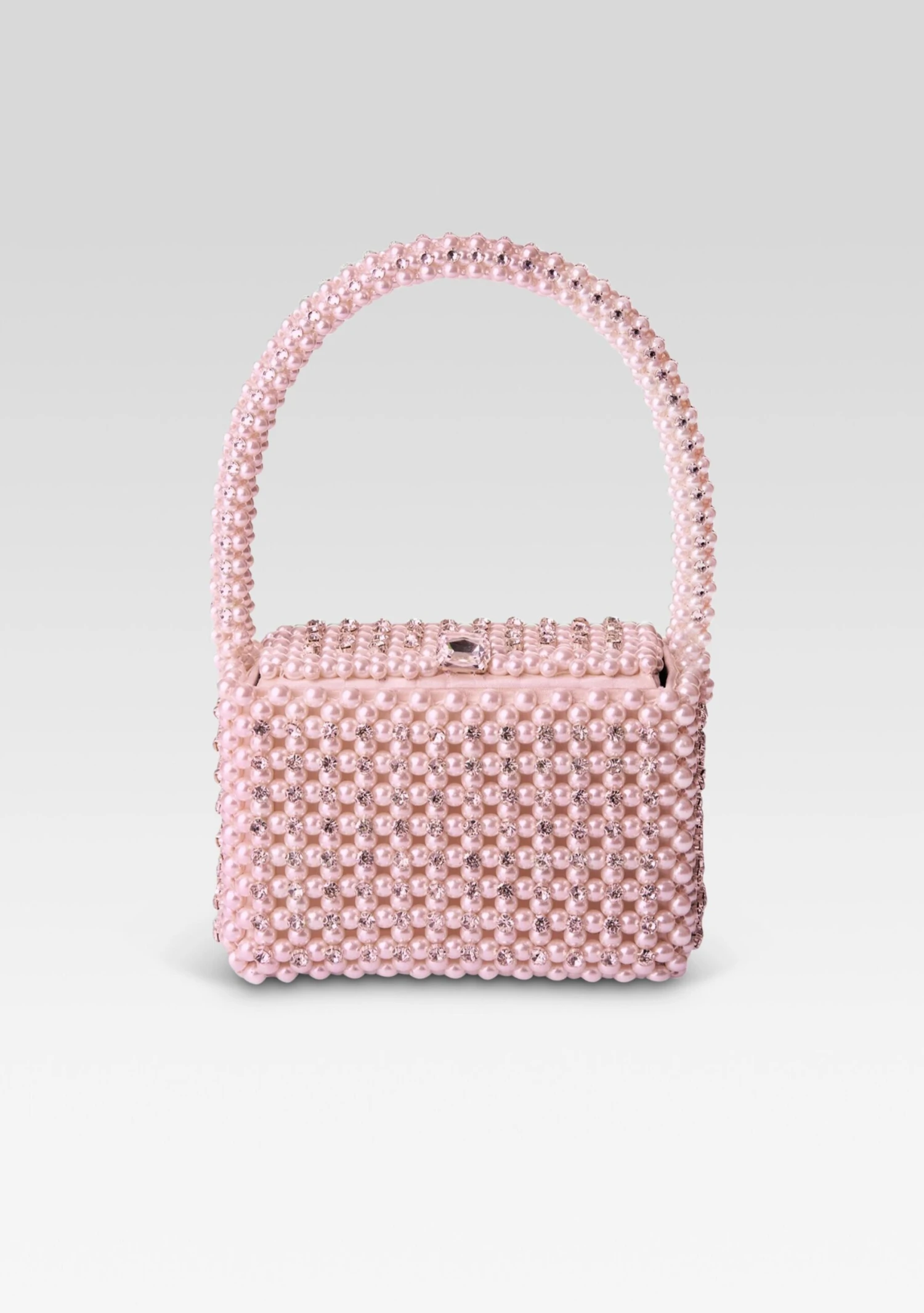 The Eclipse Pearl Bag is a glamorous addition to any ensemble. This top-handle box bag is fully embellished with pearls, making it the ultimate it-girl accessory. Shown here in Peach.