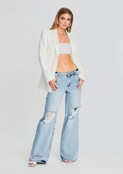 Calling all material girls—experience our coated denim. The James Mini Dress is a short and sweet silhouette that makes a major impact. With an angular strapless neckline, sculpted bodice, and tulip skirt, dress the silhouette up or down. Shown here in Coated Black.