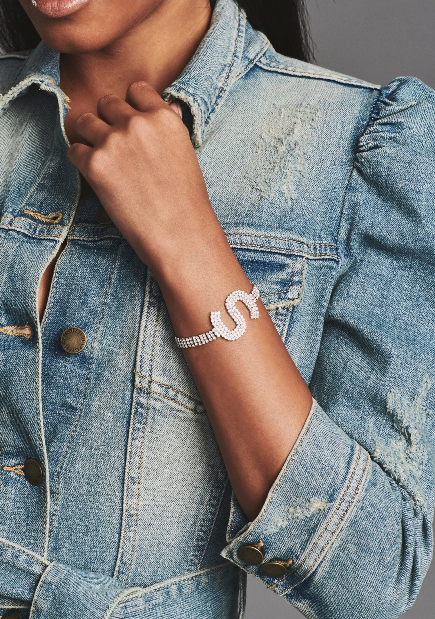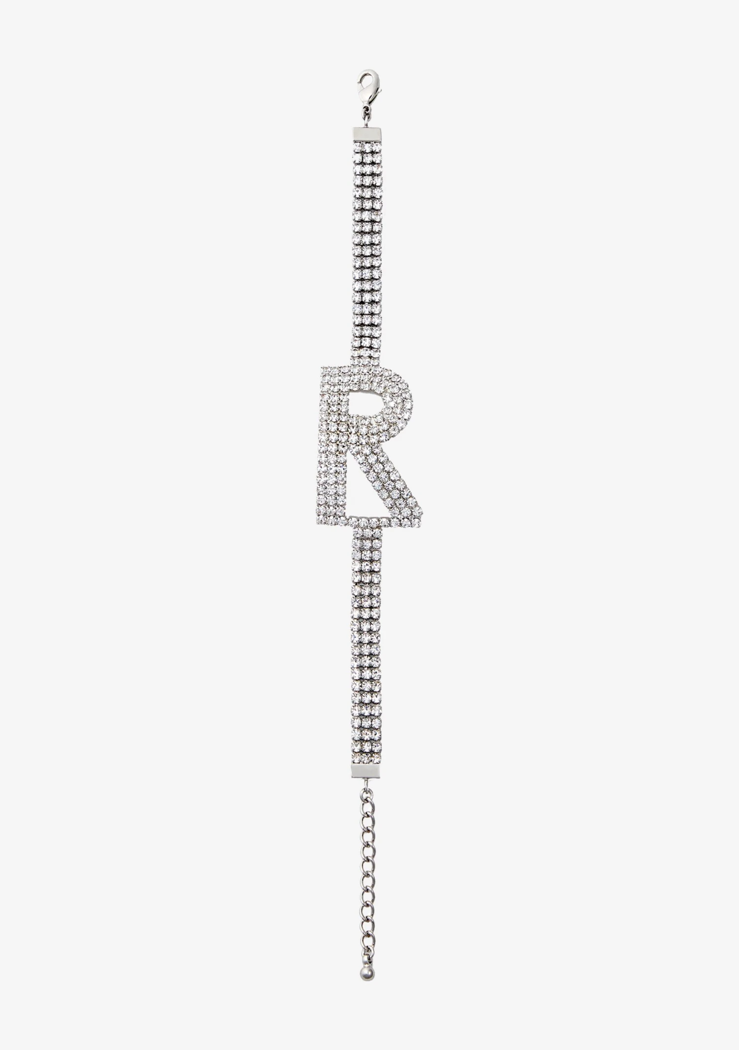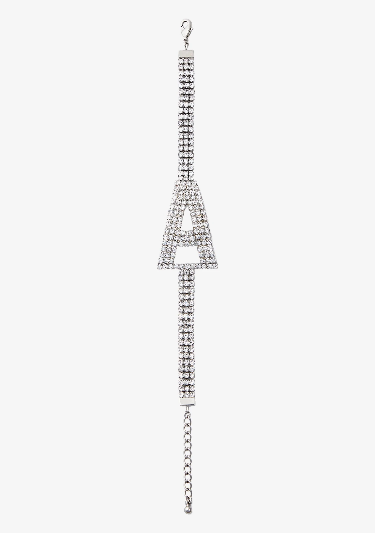 Add a touch of glamour to any look with our Alphabet Bracelet. Crafted with scores of light-catching crystals, the sleek letter design can be worn alone or stacked for a cool personalized effect. Shown here in Silver.