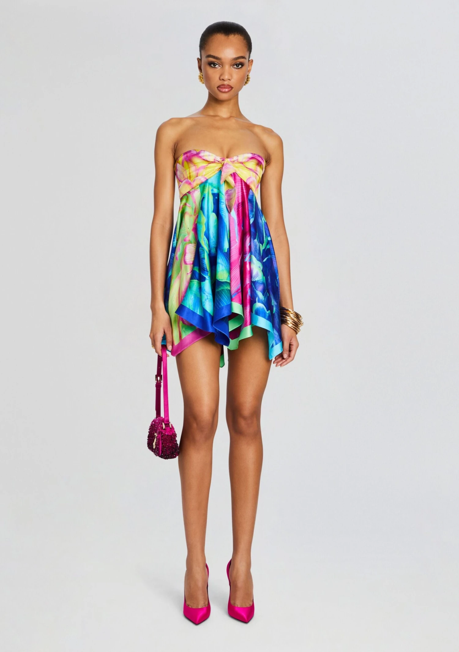 Embrace your playful side with our Senna Dress, a vibrant and girly ensemble that exudes fun and flair. Crafted from luxurious silk, this dress features a strapless design that adds a touch of sophistication to its playful charm. Whether you’re attending a summer soiree, a bridal shower, or a garden party, this dress promises to turn heads and make a lasting impression. Shown here in Mixed Peony.