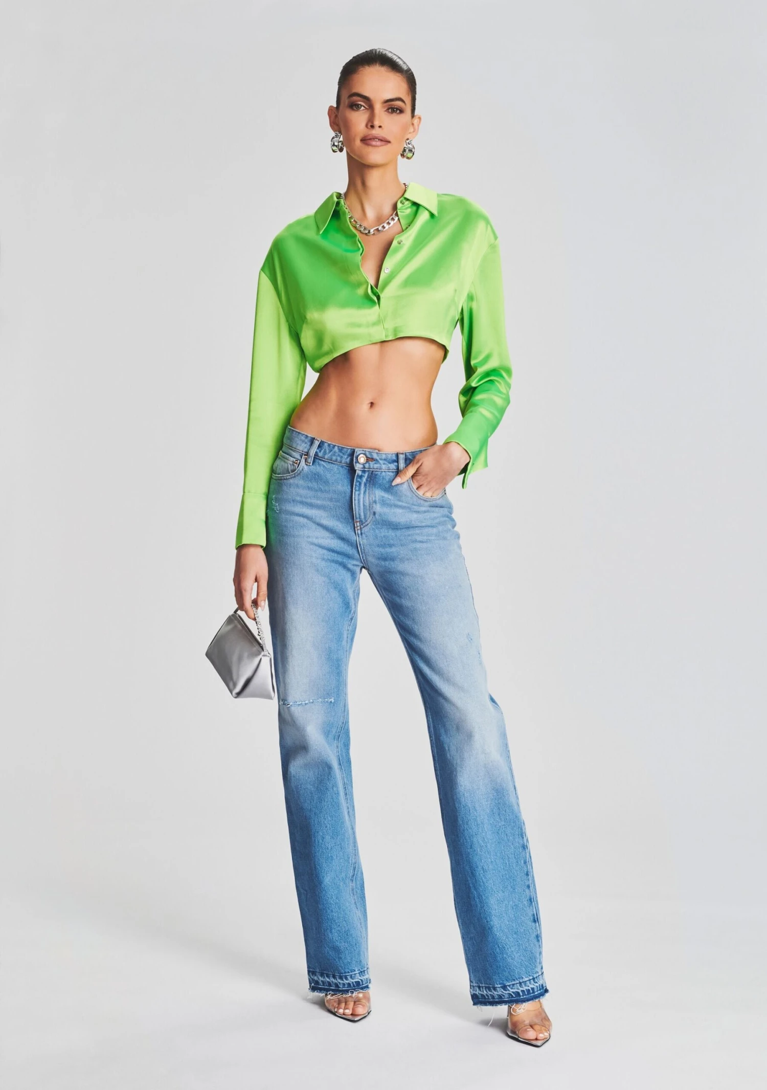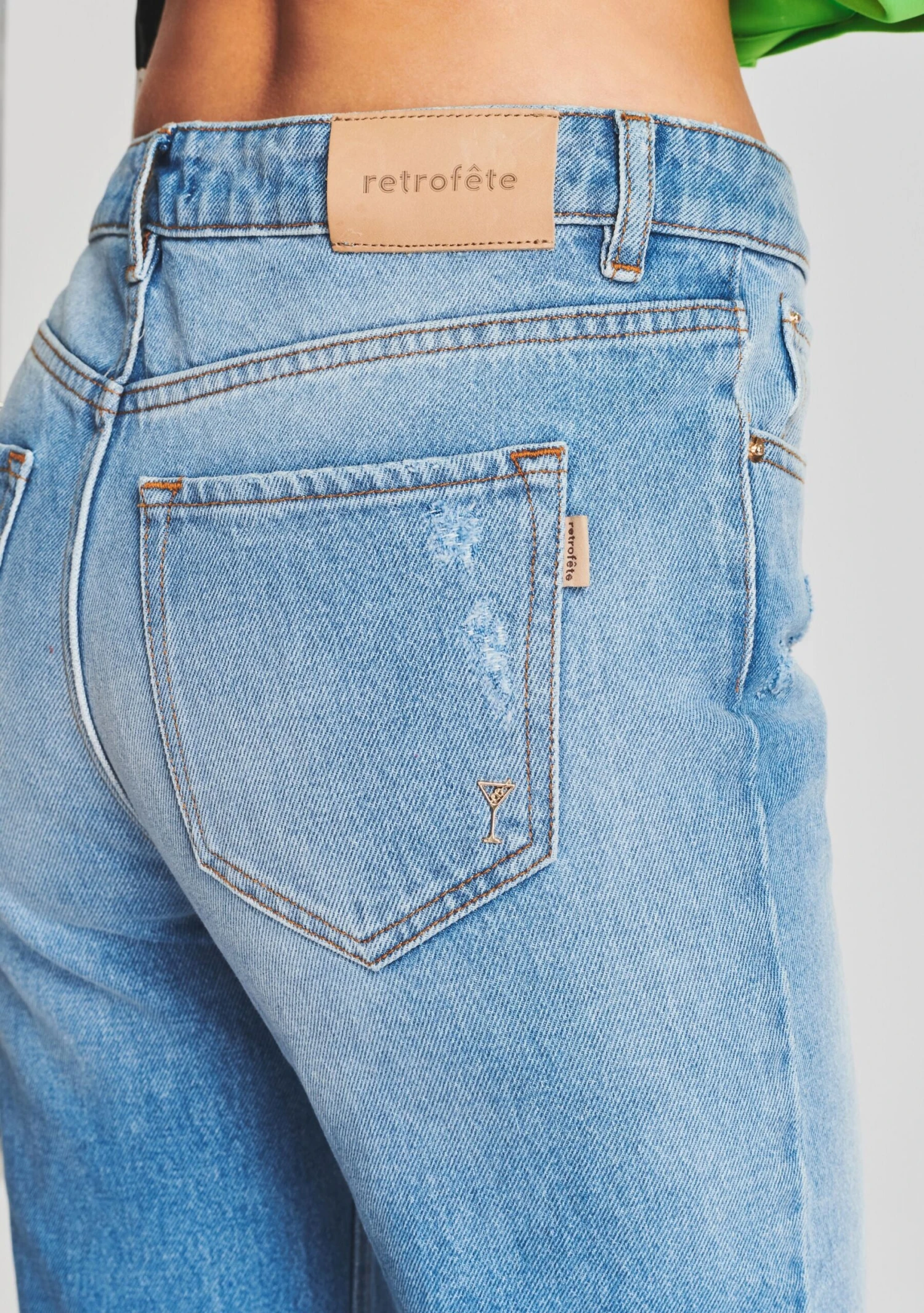 The West Straight Leg Jean is a classic denim style. This five-pocket jean features a mid-rise, light distressing, and fading throughout. Shown here in Celeste.